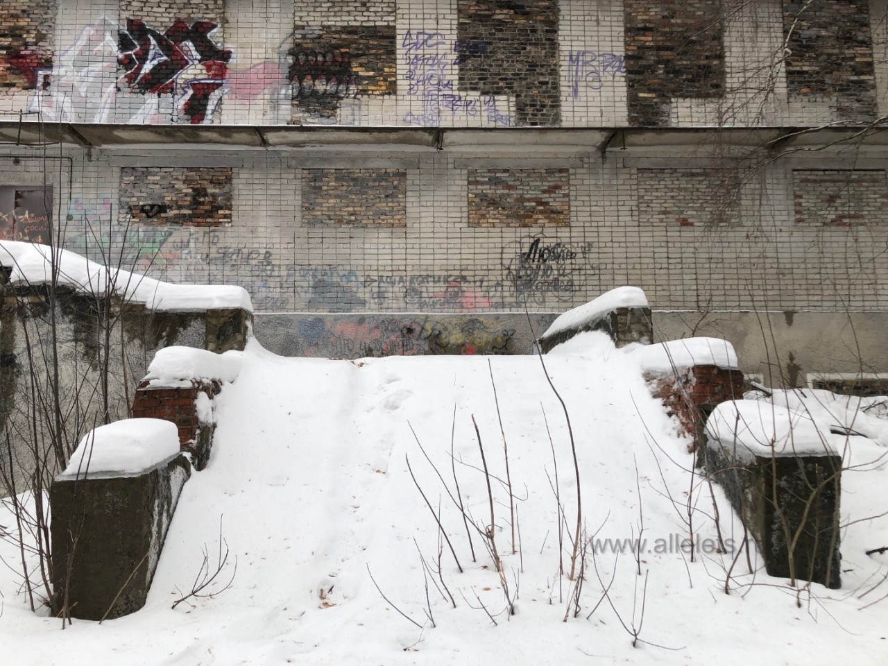 Помнится, как внутри был пожар, собирались различные личности, так как были выбиты все окна и двери, а пол на всех этажах был усыпан использованными шприцами. Сейчас все двери и окна заделали кирпичом.