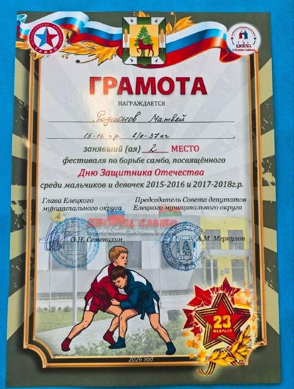 14 февраля во Дворце самбо Елецкого района прошел открытый фестиваль по борьбе самбо, посвященный Дню защитника Отечества среди мальчиков и девочек.