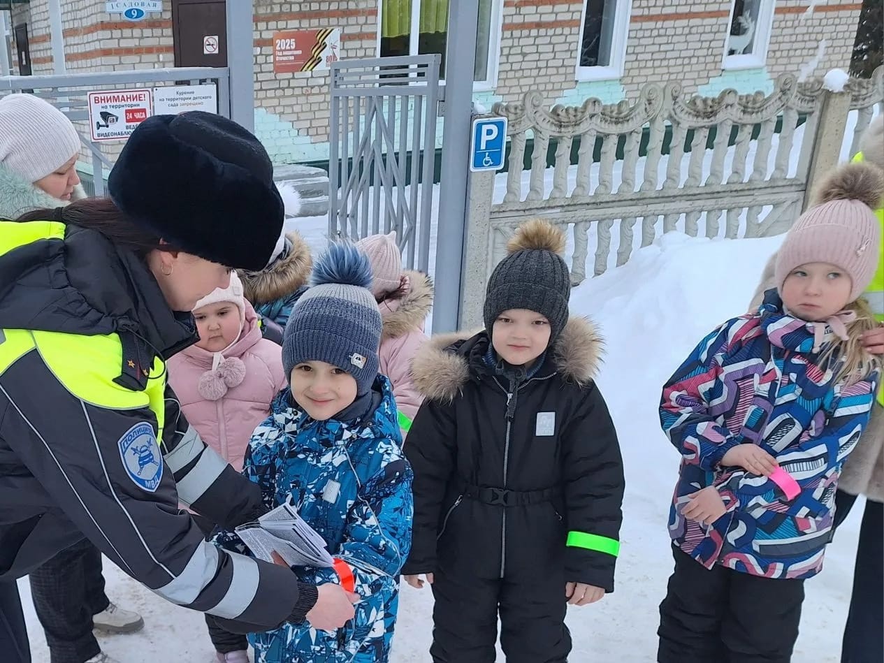 Малыши детского сада совместно с инспекторами ДПС напомнили родителям о соблюдении ПДД