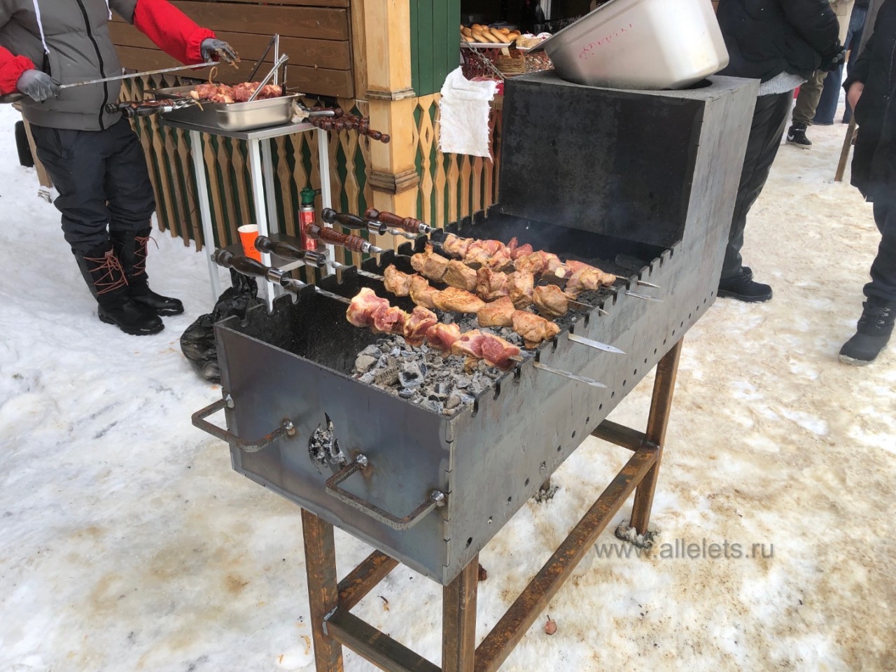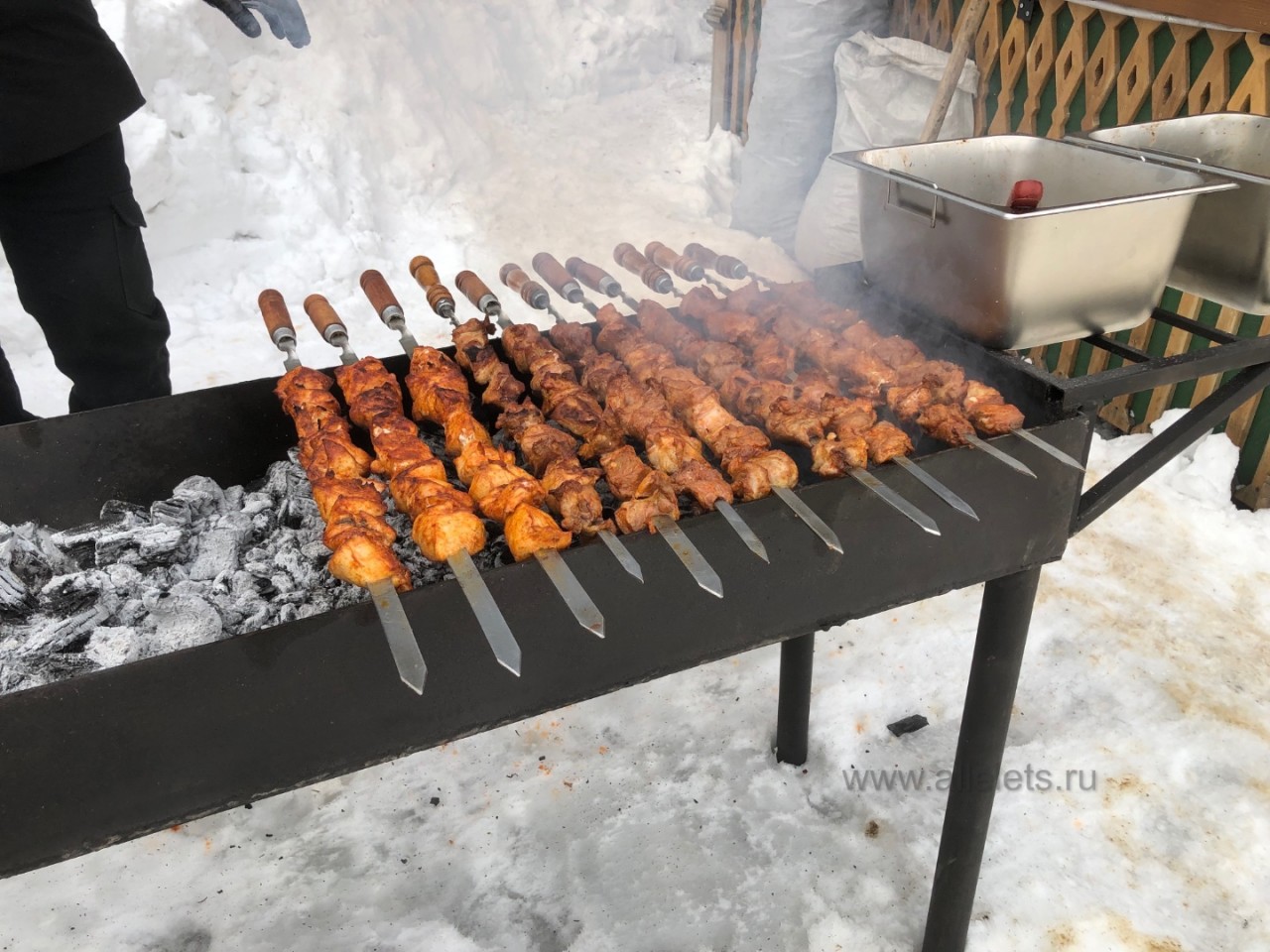 В этот субботний день на площади Ленина жарко. Горят дрова в мангалах, жарят мясо, а дым заполонил всю площадь.