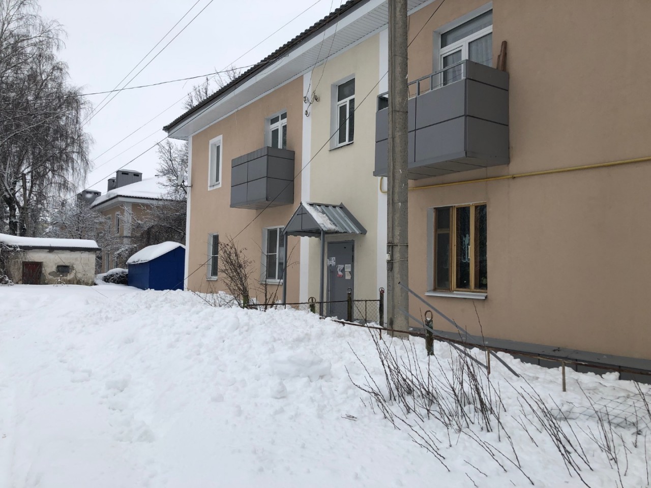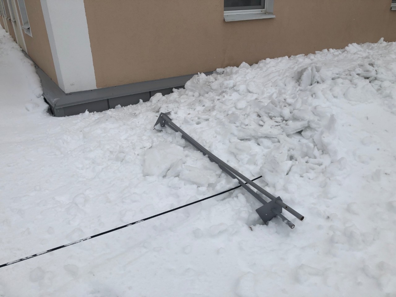 Металлические ограждения на крыше домов были установлены года 2 назад, при капремонте двухэтажных домов. И каждую зиму теперь ограждения видимо установленные для задержки снега, снег вырывает под своей тяжестью, так как своевременно не убирается.