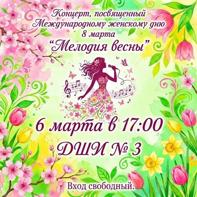 Приглашаем на праздничный концерт "Мелодия весны", посвященный Международному женскому дню 8 марта!