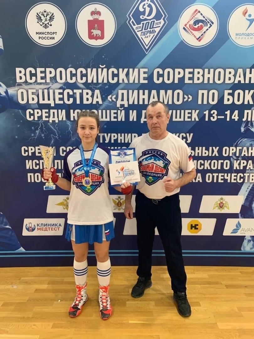 Спортсменка отделения бокса МБУДО "Спортивная школа №1" города Ельца Дарья Белякова (тренер-преподаватель Измалков В.И.) завоевала первое место на Всероссийских соревнованиях общества "Динамо" по боксу среди юношей и девушек 13-14 лет и получила путевку на первенство России. Традиции не были нарушены, Дарья получила спортивный костюм от СЕВЕРНЫЙ ДЕСАНТ!