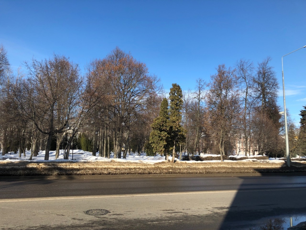 В этот солнечный прекрасный день местами высох асфальт на дороге по улице Коммунаров. Скоро высохнет и велодорожка.