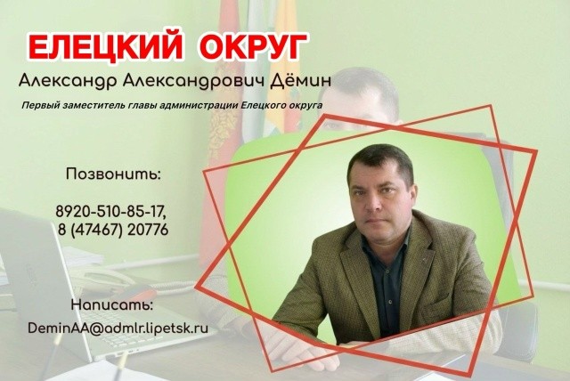 В Елецком округе предпринимателям готов помочь первый заместитель главы администрации Елецкого округа Дёмин Александр Александрович.