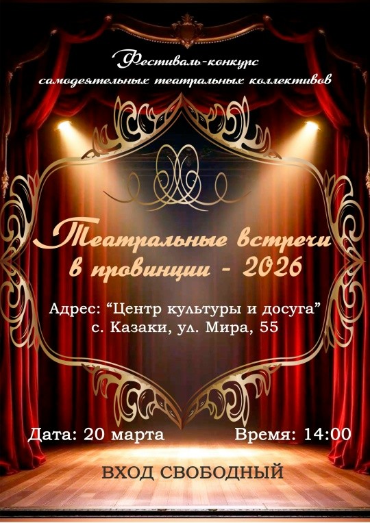 Место проведения: Центр культуры и досуга с. Казаки (ул. Мира, 55).