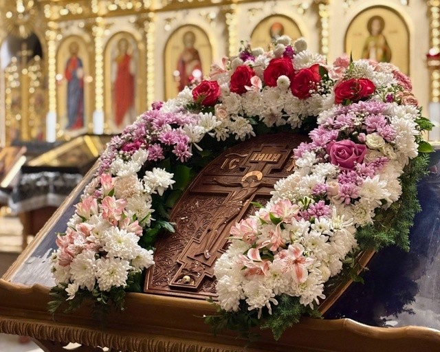 По установившейся традиции крест выносится на середину храма накануне в субботу на Всенощном бдении, после чего совершается поклонение ему верующих. Обратно он заносится только в последующую пятницу.