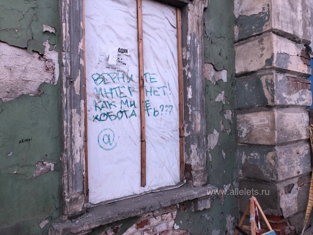 Жители Ельца стали показывать своё возмущение отсутствия мобильного интернета на стенах зданий!