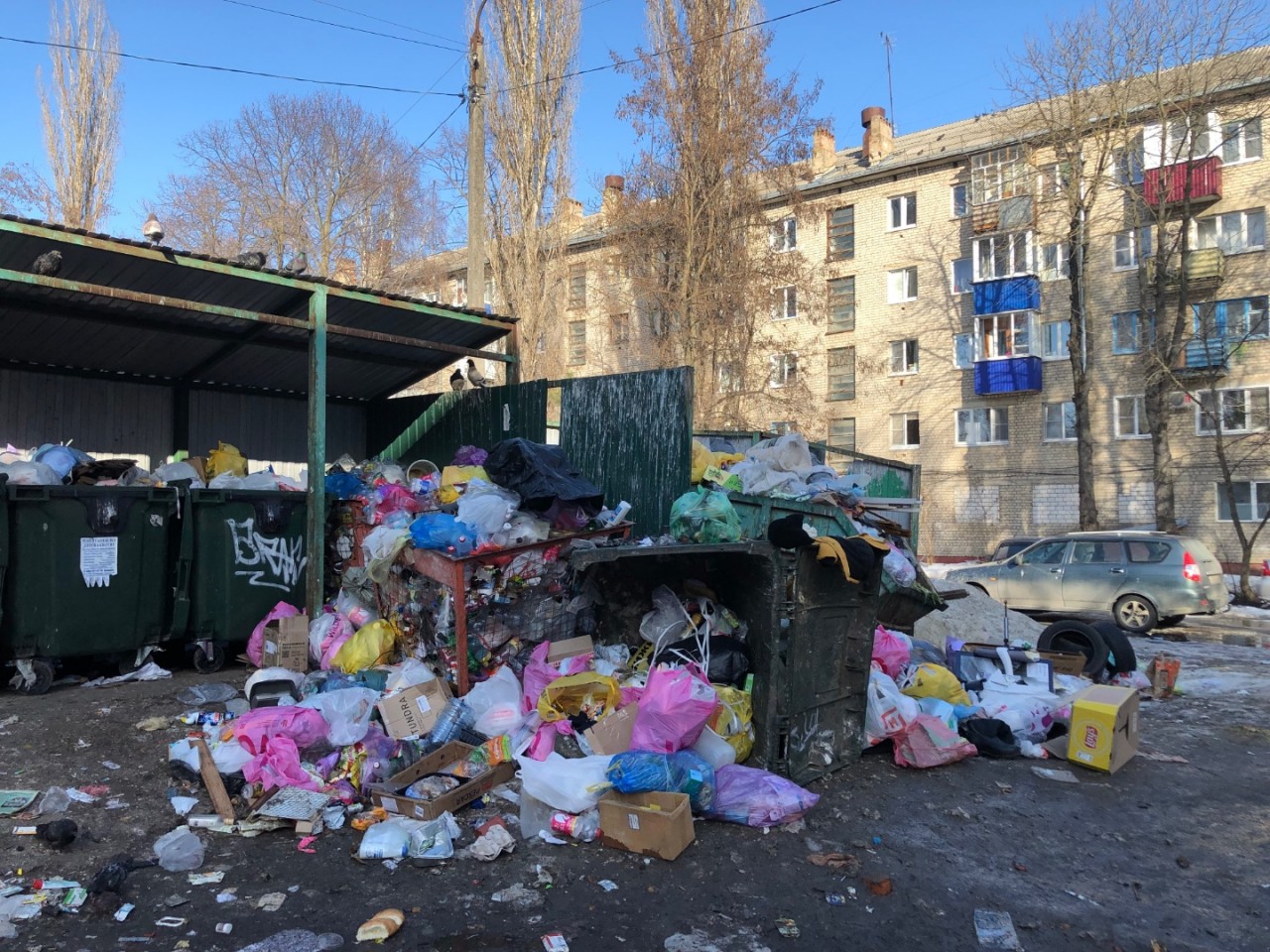 Фото сделано сейчас, в 15:58 15 марта 2026 года в городе Ельце по улице Коммунаров. Зафиксирован в «миллионный» раз факт злостного нарушения! Переполнены контейнеры, бункер, захламление прилегающей территории мусором. Из-за несвоевременного вывоза, жители вынуждены складировать мусор на земле, так как контейнеры были переполнены.