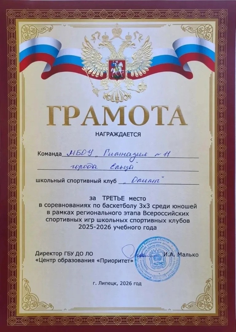 - 3 место в соревнований по баскетболу 3*3 среди юношей.