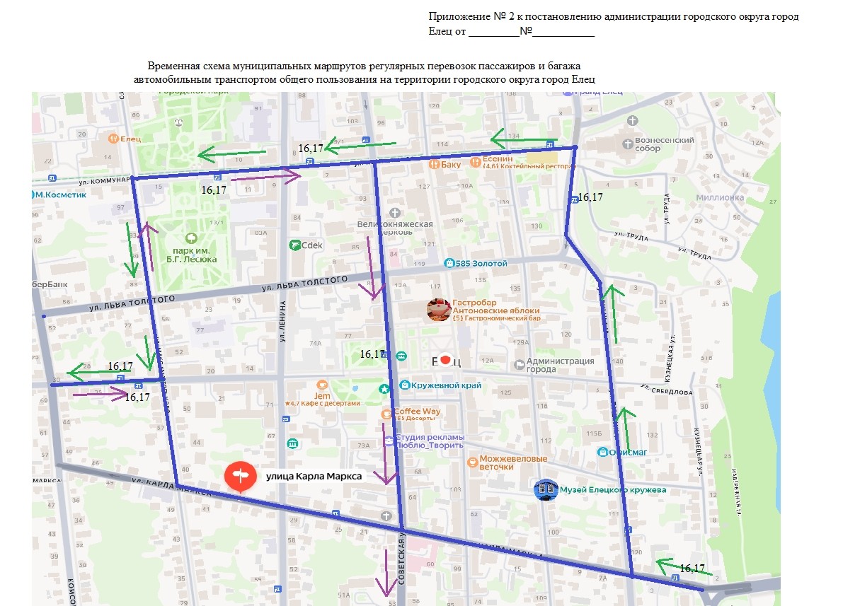 Будет установлена временная схема муниципальных маршрутов регулярных перевозок пассажиров и багажа автомобильным транспортом общего пользования на территории городского округа город Елец согласно приложению № 2.