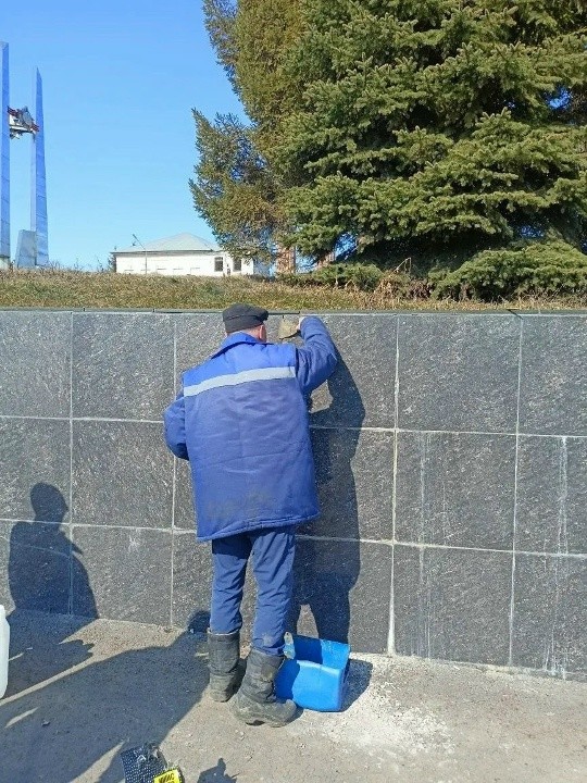 Вчера по заявке управления дорог, транспорта и благоустройства выполнена уборка мусора с въездных знаков. Проведен ремонт плитки на площади Победы. Также выполнен ремонт техники.