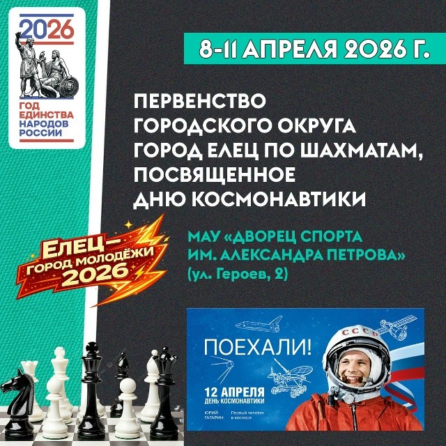 В Ельце состоится Первенство городского округа город Елец по шахматам, посвященное Дню космонавтики