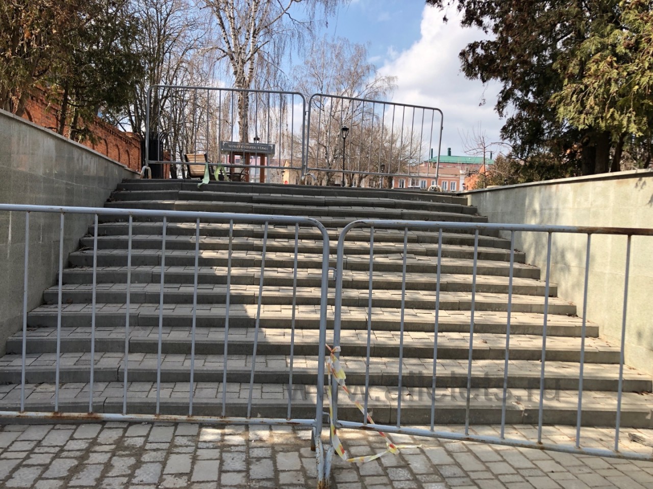 Многие жители Ельца задаются вопросом - почему перекрыта ограждениями лестница в сквер Бунина? Это связано с темой юмора на 1 апреля? Ведь ступени на месте, информационные щиты для горожан отсутствуют.