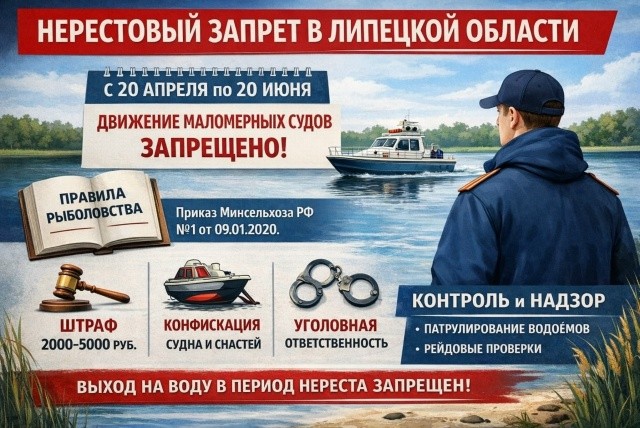 В соответствии с действующим законодательством, в период с 20 апреля по 20 июня на водных объектах Липецкой области вводится запрет на движение маломерных судов.