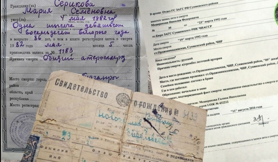 В Едином государственном реестре записей актов гражданского состояния — находятся данные о рождении, браке, разводе и смерти родных, а также некоторые другие сведения с 1926 года.