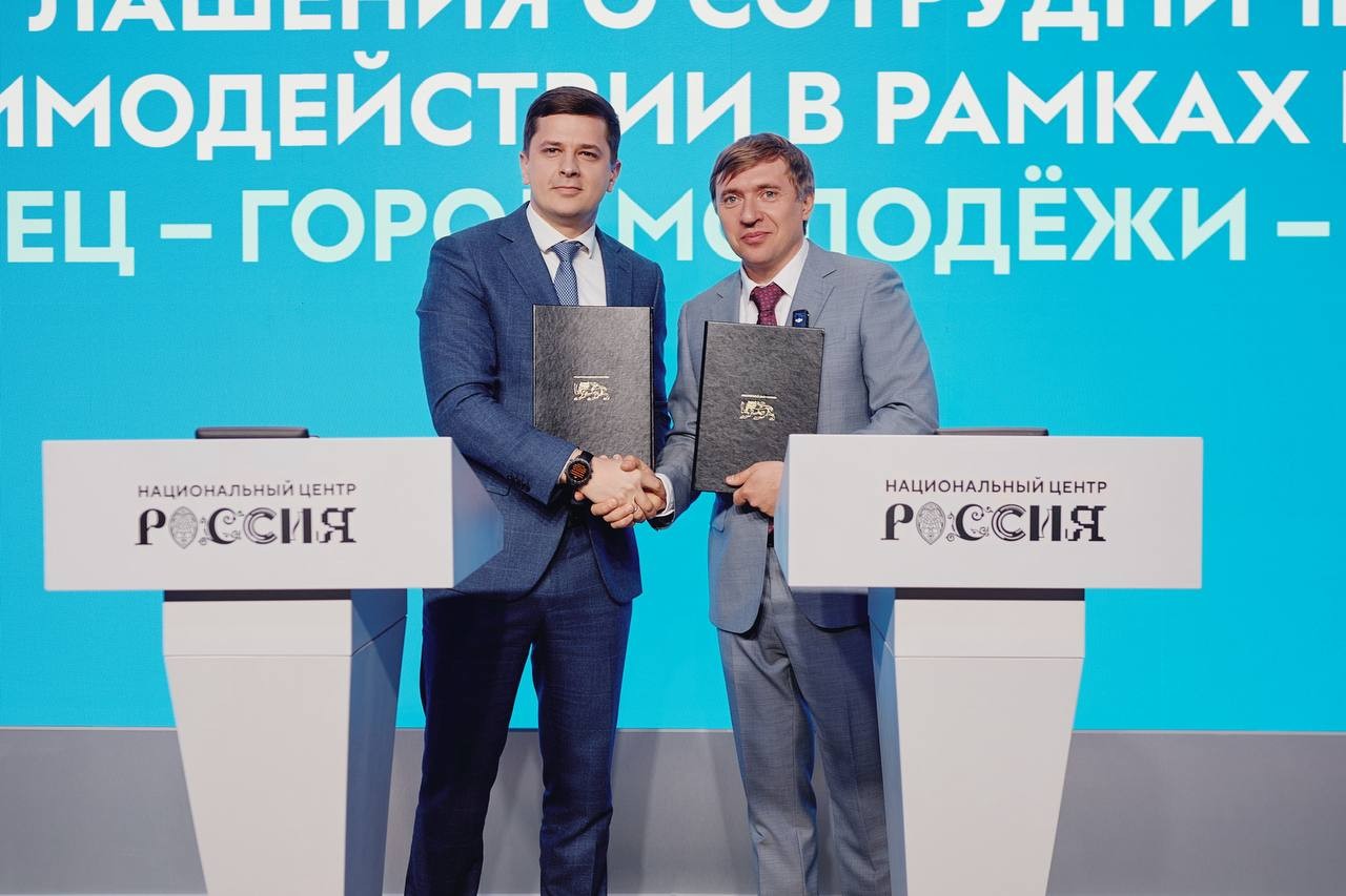 На площадке Национального центра «Россия» проходит итоговое заседание Коллегии Федерального агентства по делам молодежи. Подписали с руководителем Росмолодежи Григорием Гуровым соглашение о реализации проекта «Елец – Город молодежи – 2026».