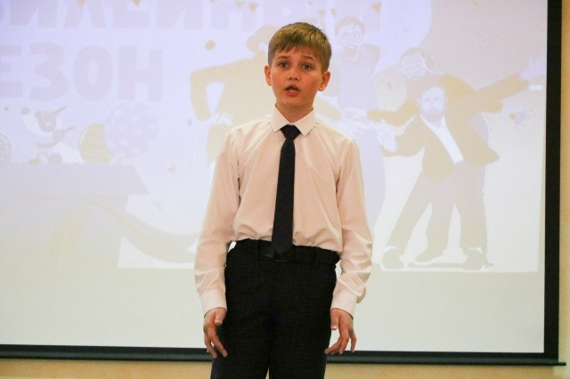 Матвей блестяще прочел произведение Андрея Саломатова «Приключения робота Гоши» в номинации «Научная фантастика».