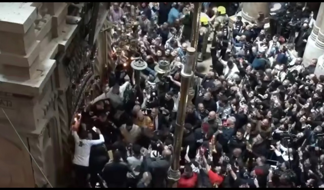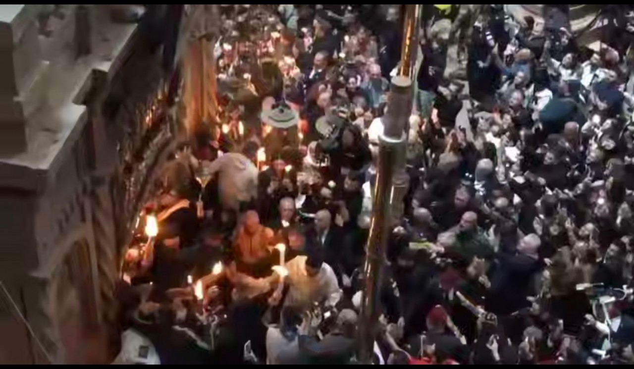 В Великую Субботу, 11 апреля 2026 года, в Кувуклии храма Воскресения Христова (Гроба Господня) в Иерусалиме сошел Благодатный огонь.