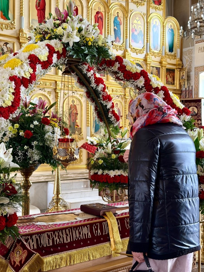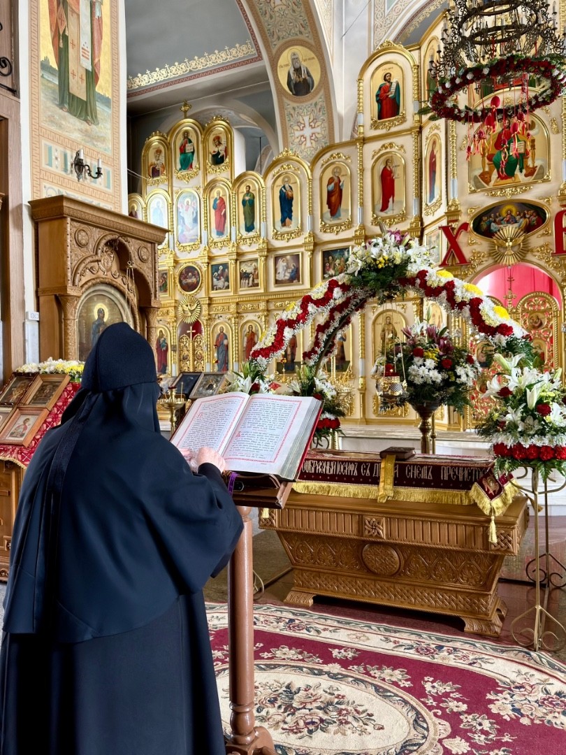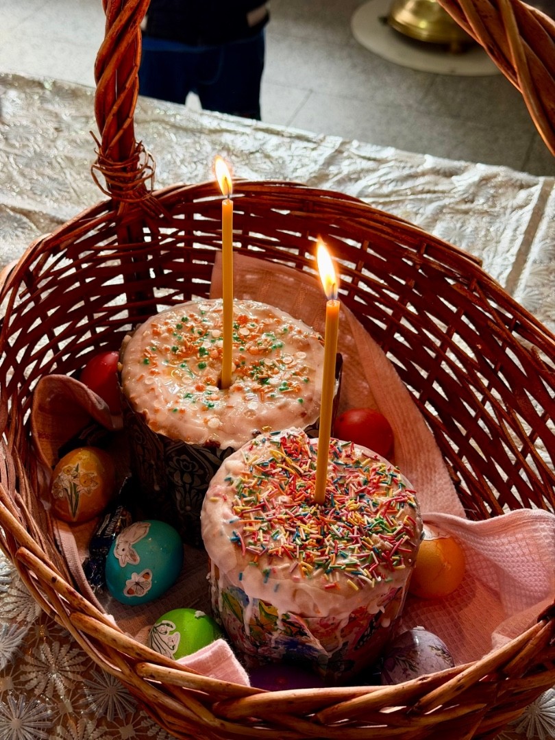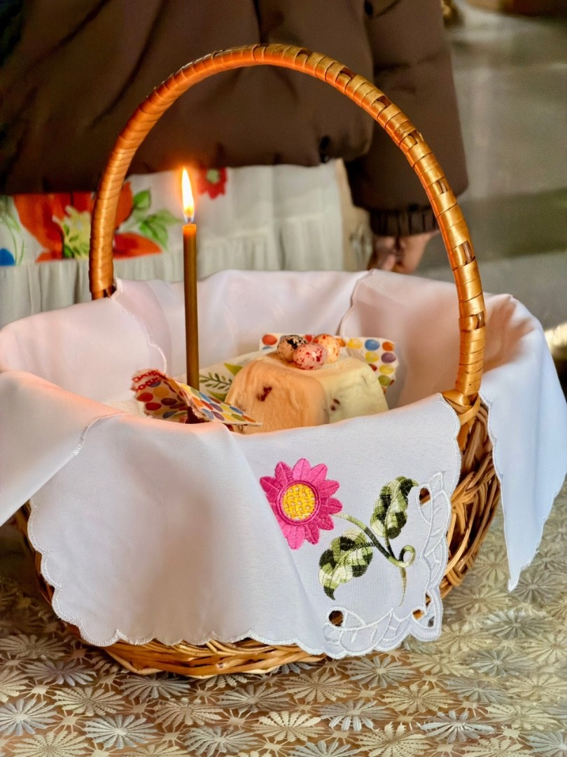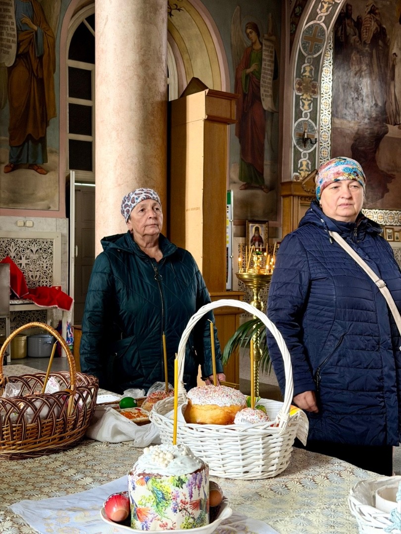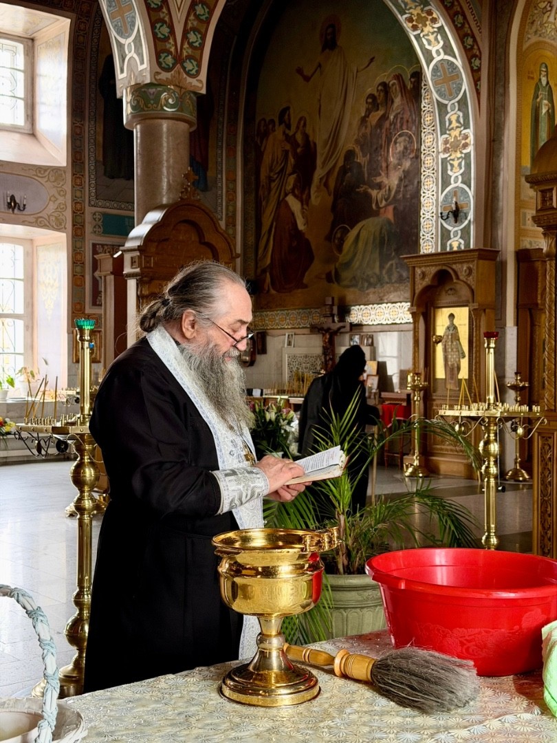 В Великую субботу в Знаменском женском монастыре после Литургии Василия Великого состоялось первое освящение куличей, пасок и яиц.