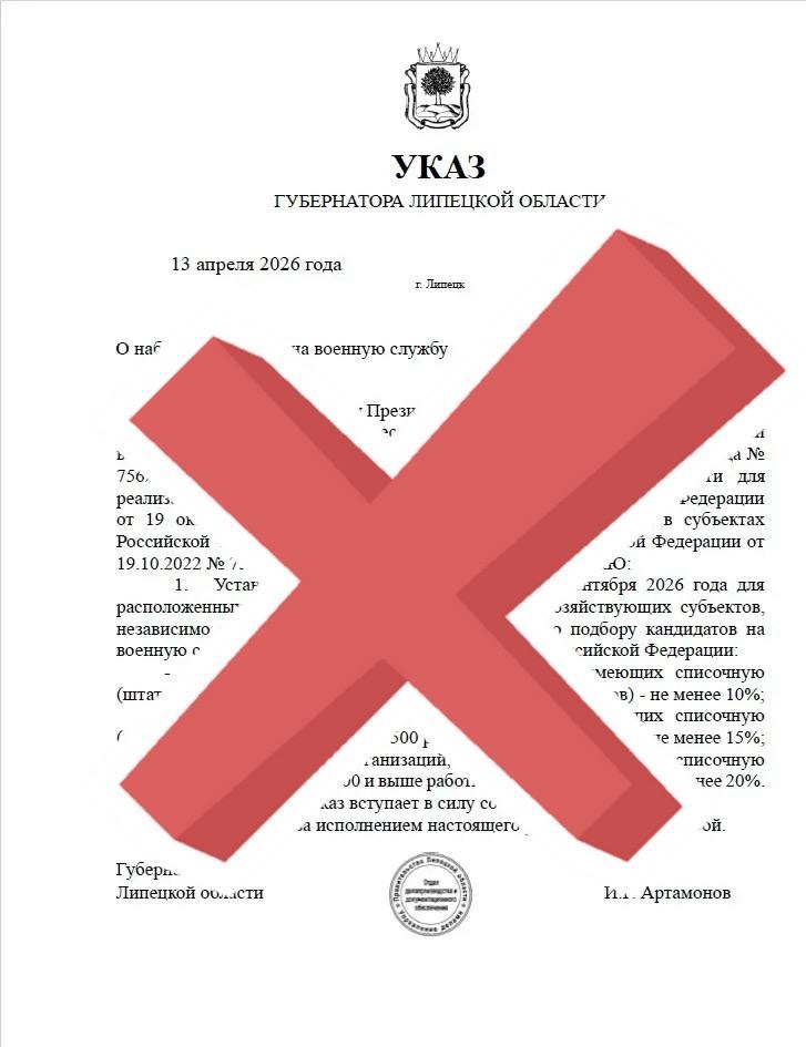 Документа с таким содержанием НЕ СУЩЕСТВУЕТ! Все мероприятия, связанные с призывом на военную службу, осуществляются в Липецкой области согласно федеральному законодательству.