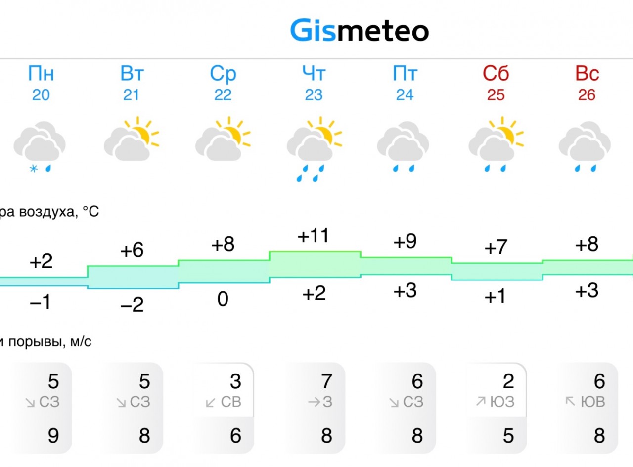 Прогноз погоды на следующую неделю