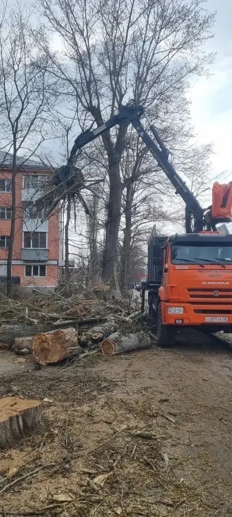 Силами аварийно‑спасательной службы совместно с «Россетями» и Министерством лесного хозяйства Липецкой области были проведены работы по спилу аварийных деревьев в районе улицы Орджоникидзе, дом 15в.