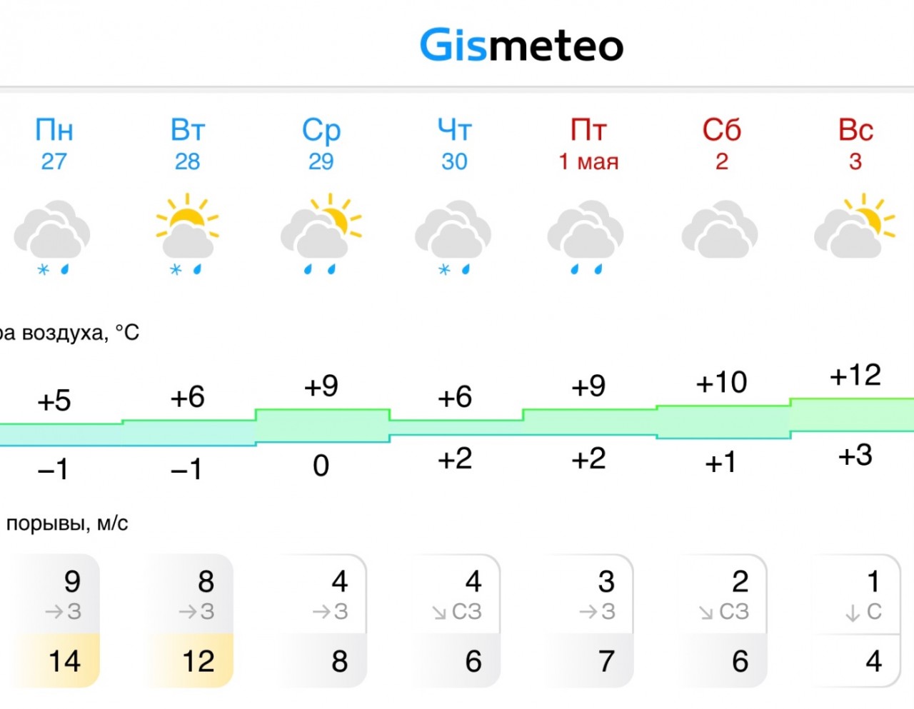 Прогноз погоды на следующую неделю