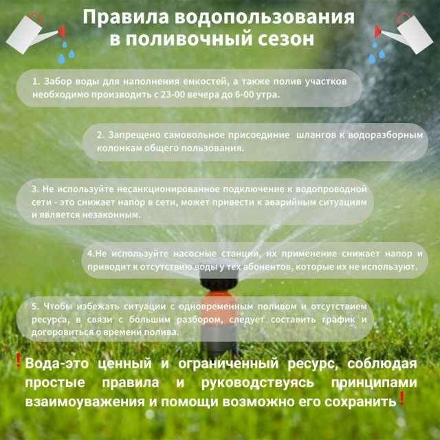 Для снижения дефицита ресурса необходимо придерживаться правил водопользования в летний сезон.