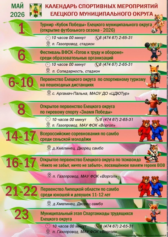 Календарь спортивных мероприятий Елецкого муниципального округа на май 2026 года