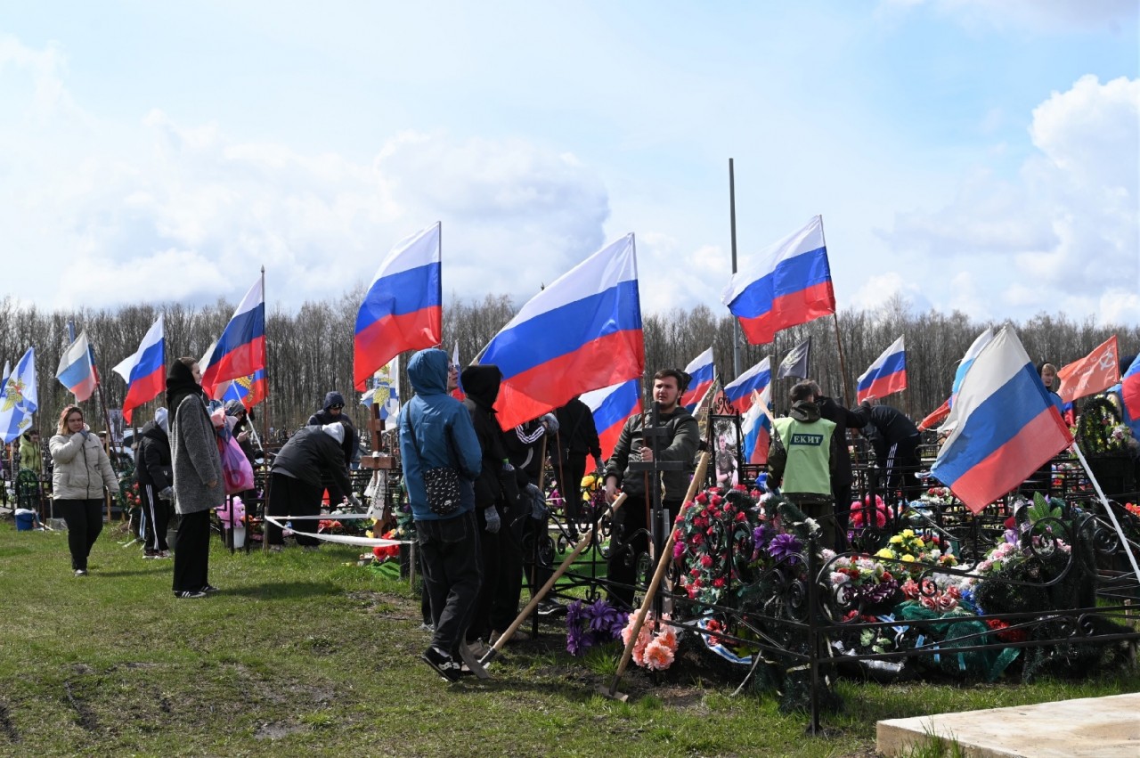 Участие в уборке принимали студенты колледжей, техникумов, институтов, активная молодежь города, родные и близкие Героев и собратья по оружию. Все вместе ельчане приводили в порядок могилы участников специальной военной операции: убрали прилегающие территории от мусора, сухих веток и прошлогодней листвы, обновили государственные флаги.