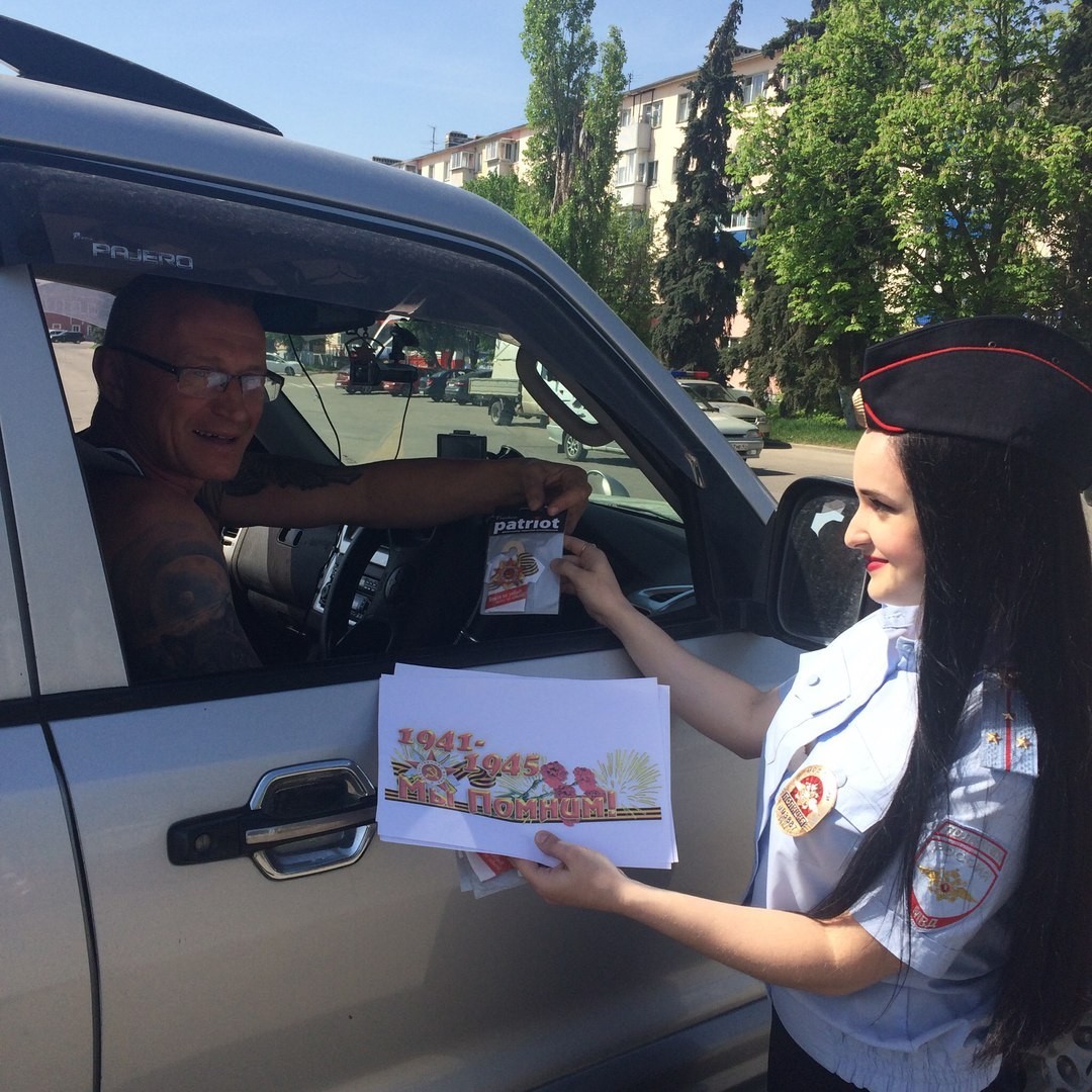 В канун празднования 73-летия со дня Победы в Великой Отечественной войне сотрудники ОГИБДД ОМВД России по г. Ельцу вышли на дороги города, чтобы поздравить водителей с наступающим праздником и вручить им тематические памятки и ароматизаторы для автомобиля с символикой праздника.
